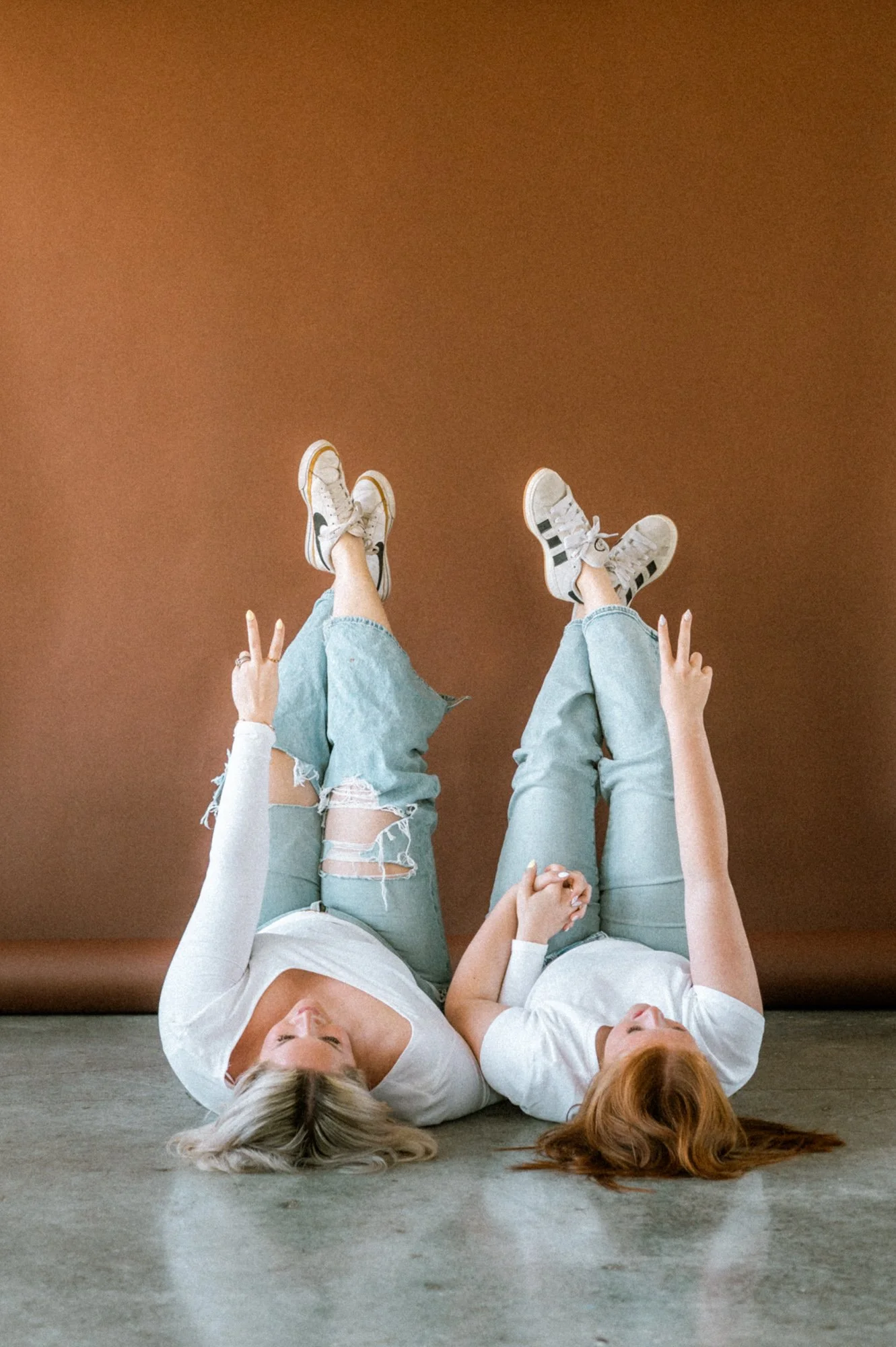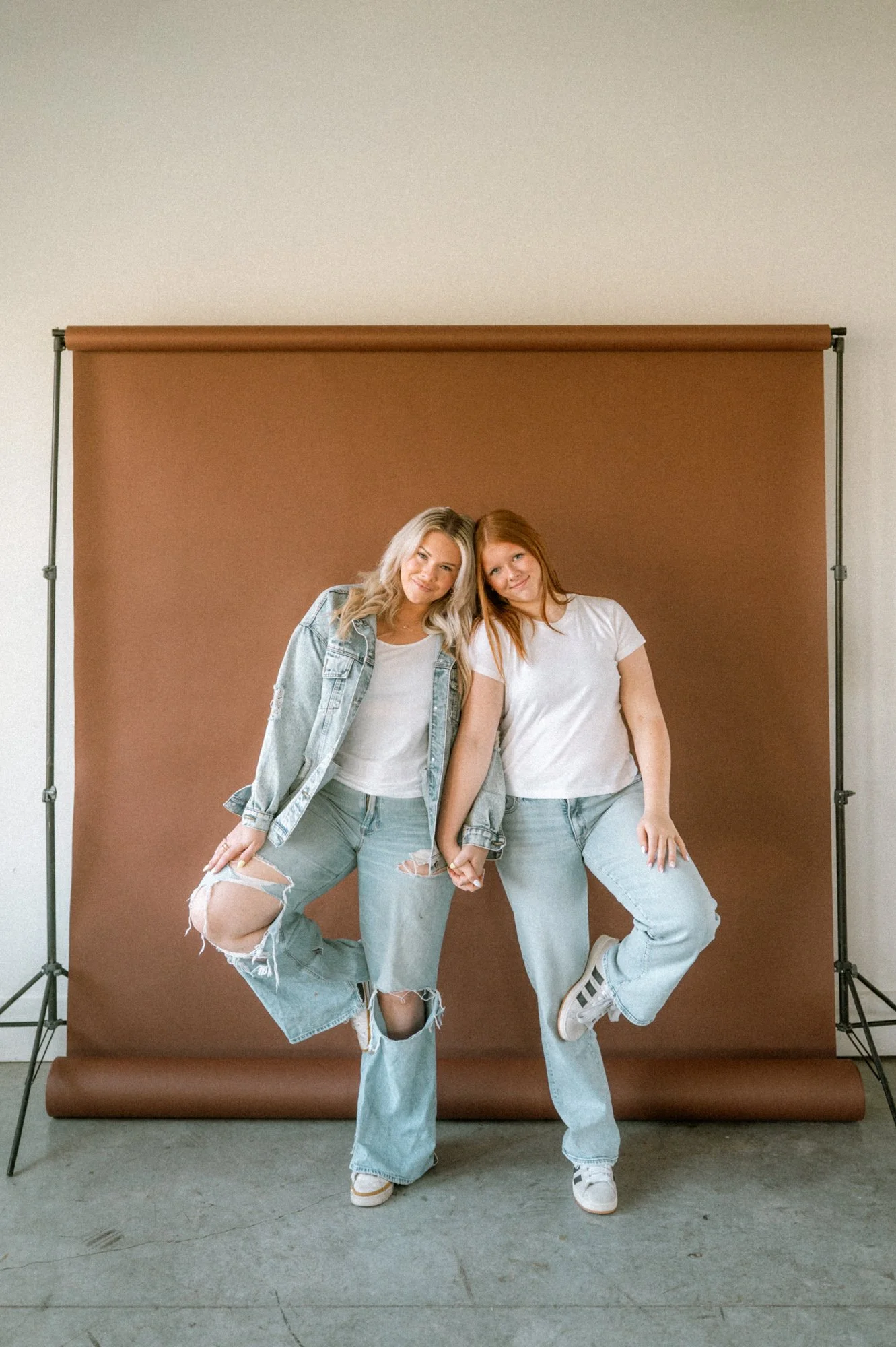 Keep it simple and coordinated! For these sessions, I'm loving denim, light neutrals like beige, white, and cream for this setup — colors that feel timeless and photograph beautifully. Avoid busy logos or graphics, and think about shoes since they can distract if they don't coordinate well. Bare feet are always darling too!